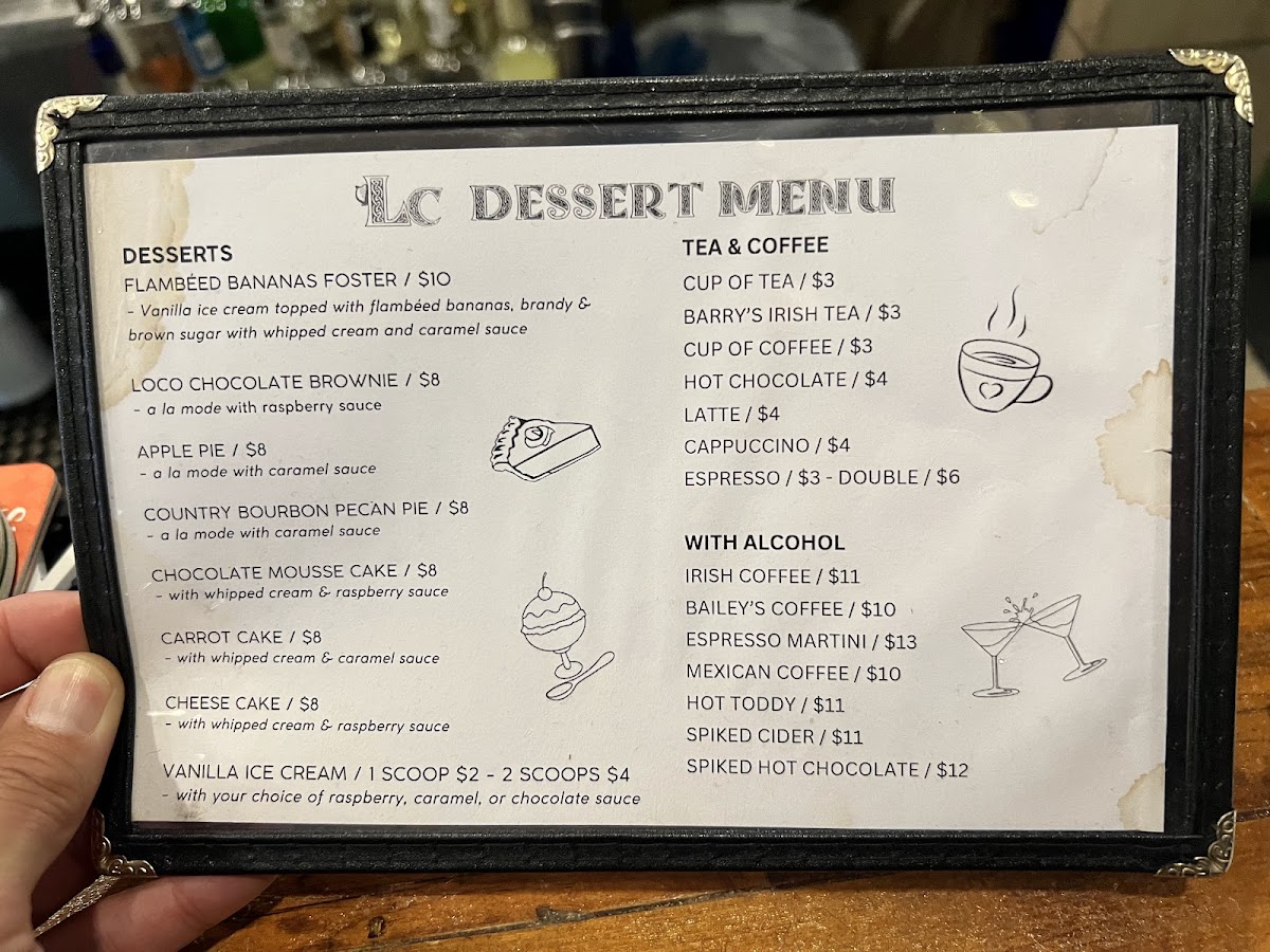 The menu suits a wide range of occasions—whether you're stopping in for a satisfying Irish Breakfast on a slow morning, sharing Sweet Potato Fries and Mozzarella Sticks with friends over drinks, or winding down with a classic Irish Coffee or a Black and Tan. A thoughtful selection of draft beers and cocktails like the Bloody Mary or Jack Daniels and Ginger Ale complement the food, enhancing the warm, local bar atmosphere.